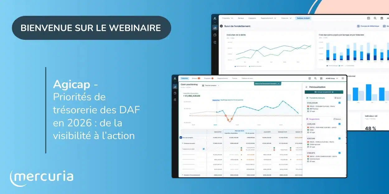 L’optimisation de la trésorerie s’impose comme un pilier pour assurer la croissance et la stabilité des entreprises. Découvrez dans ce webinaire comment Mercuria et Agicap répondent à vos enjeux de trésorerie pour 2026.